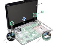 Hold the display assembly in place and remove the four screws that secure the display assembly to the computer base.