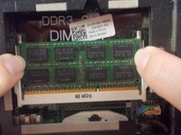 Use your fingers to separate the two metal clips from the RAM.