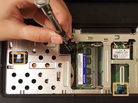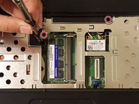 Remove the two 3mm hard drive screws from the bottom of the laptop with a Phillips #PH00 screw.