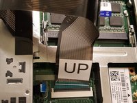 Pull the cable labeled "UP" out to disconnect it from the laptop.