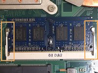Lift the RAM out of the memory port by first pulling forward, away from the port, and then upward.