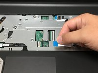 Gently turn the keyboard over to reveal the ribbon cable underneath. Remove the cable from the motherboard by lifting the white release tab and gently pulling the cable away from the socket.
