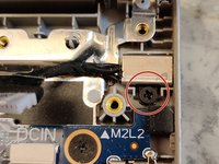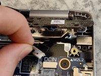 Remove 1 M2x3 screw and lift DP-cable mounting bracket