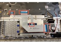 Diconnect makred cables. Make sure to lift up locking tabs with a plastic tool. CMOS and speaker cable are disconnected by pulling on the white connector on the cable.