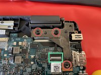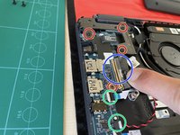 The screws on the right side (green circle) still hold the mainboard in place.