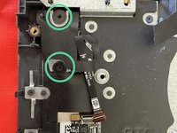 The ribbon cables we just removed are connected to the power button. To remove it we have to remove two flat-head screws (green circle)