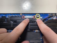 Remove the two 2 mm Phillips #1 screws that secure the display cable bracket.