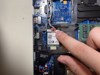 Remove the one 1 mm Phillips #1 screw that secures the Wi-Fi card.