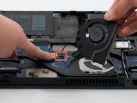 Use a Phillips #00 screwdriver to remove the two 3.1 mm screws holding the fan down.