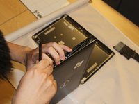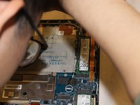 Avoid static discharge by grounding yourself using a wrist grounding strap or by touching a bare metal surface like a connector on the back of the laptop. Remove all of the power including the battery and power adapter.