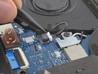 • Use a spudger to press on alternating sides of the fan connector to "walk" it out of its socket.