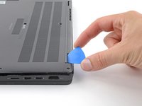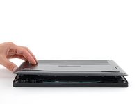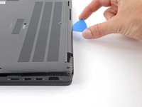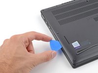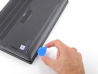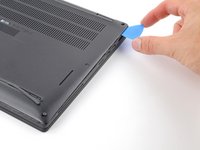 Insert your pick between the back cover and the right display-hinge to release the first clip along the back edge.