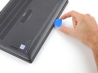 Insert an opening pick between the right edge of the back cover and the frame, just below the middle right screw.