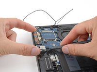 Lift the antenna cables out from their cable routing on the I/O board and move them away from the board.