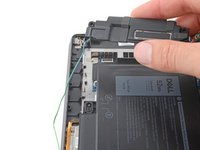 Insert the flat end of your spudger between the left edge of the left speaker and the frame.