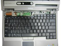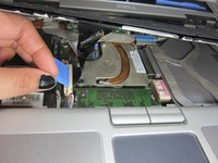 Use an opening tool or flat tool to remove the plastic cover above the keyboard.