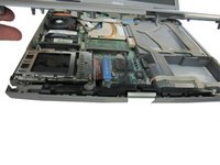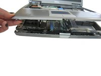 Turn the computer over. Using an opening tool seperate the top cover from the rest of the frame.