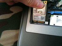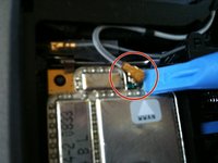 Using similar procedures as the WLAN, disconnect the single antenna cable, push the rear clips back and remove the card.