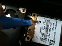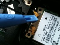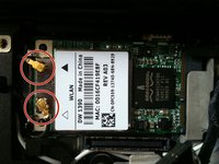Use a tool or your fingers to gently remove the antenna cables from the wireless card.