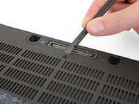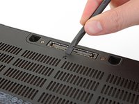 • Insert the flat edge of a spudger into the small divot along the top edge of the case, just below the docking station port.