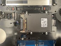 Remove four silver screws with a Phillips PH0 screwdriver, slide the keyboard up a couple of millimetres then lift it up away from you to expose the ribbon cable