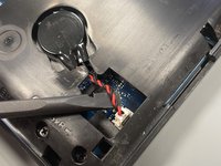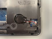 Gently guide the cable through the narrowed part and remove the battery that is held in place with double sided tape