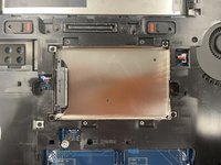 Slide the hard drive cradle out by pulling the plastic tab