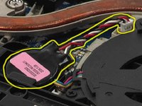 After removing the access panel, locate the coin cell battery. Then disconnect the battery cable from the system board and lift the coin-cell battery out of its socket to remove.