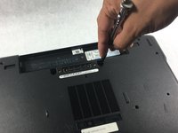 Using the screwdriver, remove two 9mm Phillips #00 screws from the bottom of the laptop.