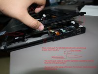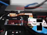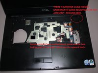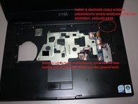 Remove one screw, and disconnect all cables. Keep in mind when you remove the palm rest assembly there will be a hidden cable as mentioned in the picture.