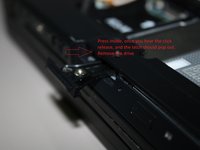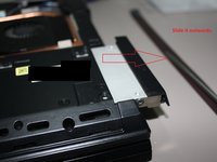 Remove the hard drive by sliding the side that previously held the screw, then pushing to the opposite side where the lock is.