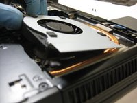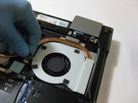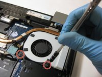 Unscrew the two 5.5 mm screws securing the fan.
