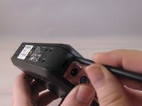 Unscrew and remove the eight 4mm Phillips #0 screws (four on top, four on bottom) from the top and bottom of the device.