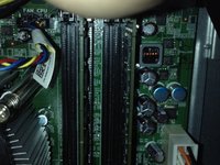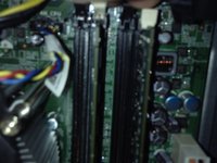 The RAM DIMMs are to the right of the CPU cooler and fan.