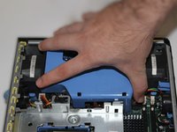 Squeeze both tabs and slide the hard disk drive towards you, then lift the drive out of the cage.