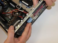 Press down on the two white tabs on either side of the memory module; the RAM will pop out.