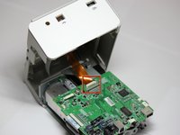Rotate the photo printer so that the bottom panel faces up once again. Now lift off the bottom panel of the case to access all internal components.