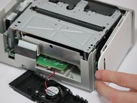 Carefully, remove the red and black cable from the logic board by pulling gently in order to isolate the cooling fan from the device.