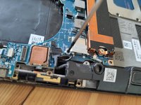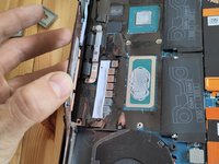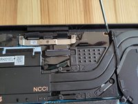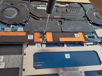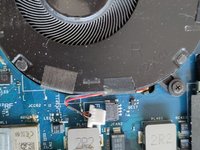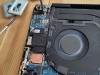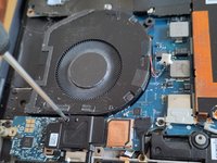 Remove the screw holding the fan, the screw holding a cover over the fan and the connector with the FAN label below the connector (it's underneath so you only see the label once you remove the connector).