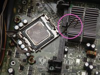 If you have a floppy disk drive, it has a ribbon cable that runs over the heat-sink assembly that must be moved out of the way. To remove it, first unplug it from the system board by pulling on plastic pull ring.