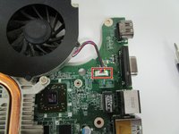 Unscrew the two silver screws attached to the motherboard.