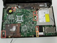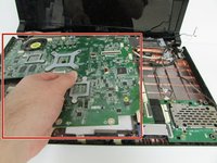 Then unscrew the black screw attaching it to the motherboard close to the outer edge of the laptop.