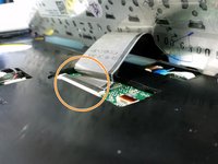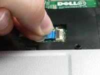 Disconnect the ribbon from the ZIF (Zero Insertion Force) connector by flipping up the small black flap with a spudger or fingernail and removing the cable using the blue tab to pull away.