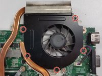 Unscrew the six silver screws that attach the fan casing to the motherboard.