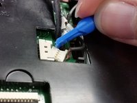 Disconnect the ribbon from the ZIF (Zero Insertion Force) connector by flipping up the small black flap with a spudger or fingernail and removing the cable using the blue tab to pull away.