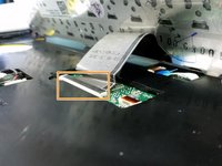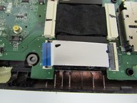 Carefully unlatch and remove the ribbon cable from the motherboard by lifting up the black tab (with a spudger or finger) and slipping the cable out.