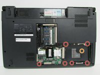 Then unscrew the black screw attaching it to the motherboard close to the outer edge of the laptop.