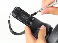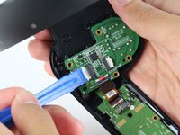 Turn your controller 90 degrees clockwise and insert a plastic opening tool into the crease of the back panel.