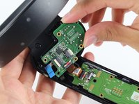 Place two fingers on the perimeter of the daughterboard and fold it down along the orange cable.
