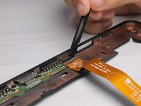 The right ribbon cable has a ZIF connector. Use the flat end of your spudger to lift up the small locking flap, then pull out the cable.